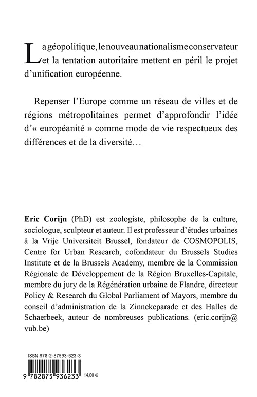 Eric Corijn (PhD) est zoologiste, philosophe de la culture, sociologue, sculpteur et auteur. Il est professeur d’études urbaines à la Vrije Universiteit Brussel, fondateur de COSMOPOLIS, Centre for Urban Research, cofondateur du Brussels Studies Institute et de la Brussels Academy, membre de la Commission Régionale de Développement de la Région Bruxelles-Capitale, membre du jury de la Régénération urbaine de Flandre, directeur Policy & Research du Global Parliament of Mayors, membre du conseil d’administration de la Zinnekeparade et des Halles de Schaerbeek, auteur de nombreuses publications. (eric.corijn@vub.be)